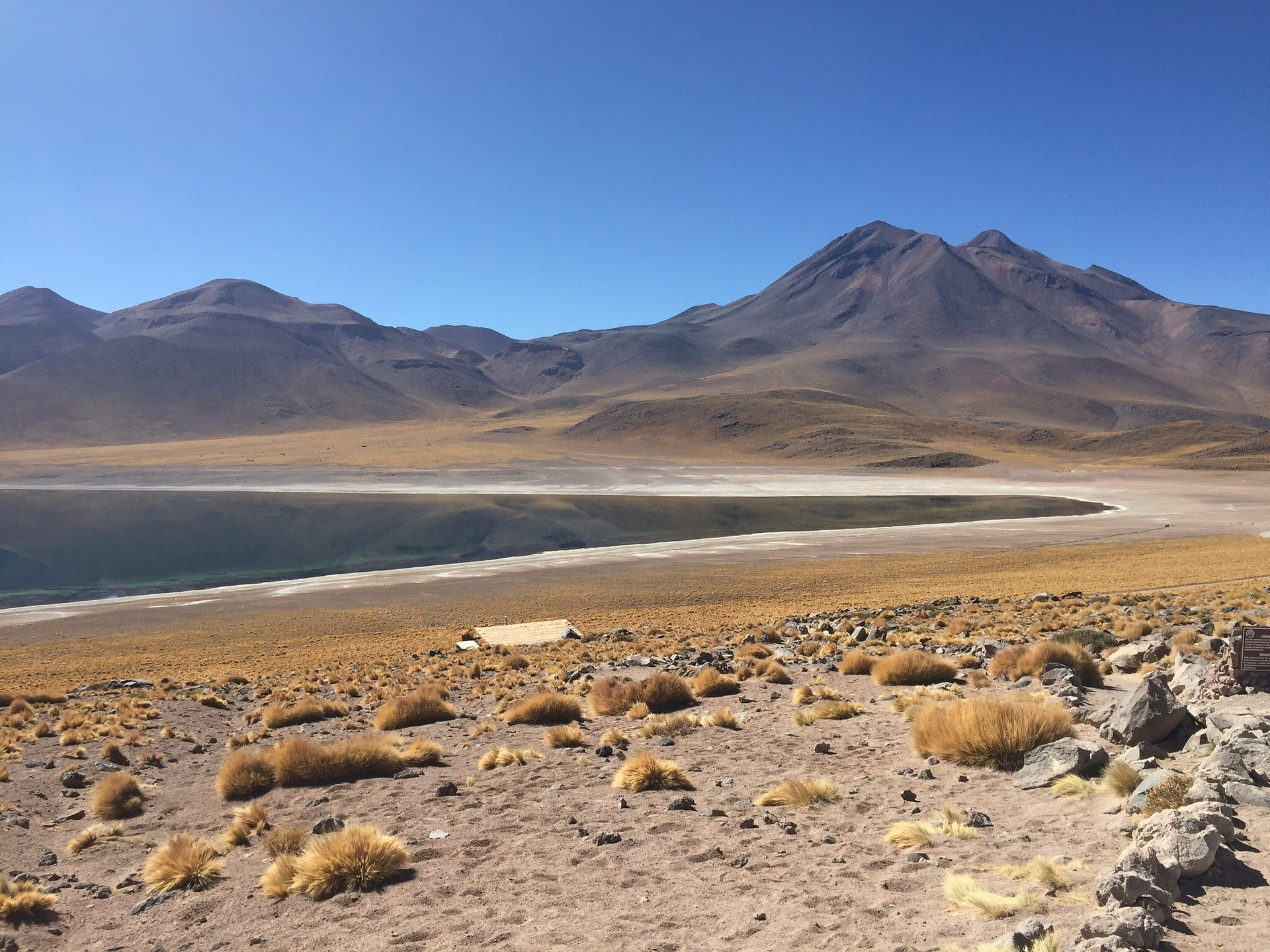 アタカマ塩原にはいくつものラグーン(湖)が存在します。塩水のため浮かぶことができます。