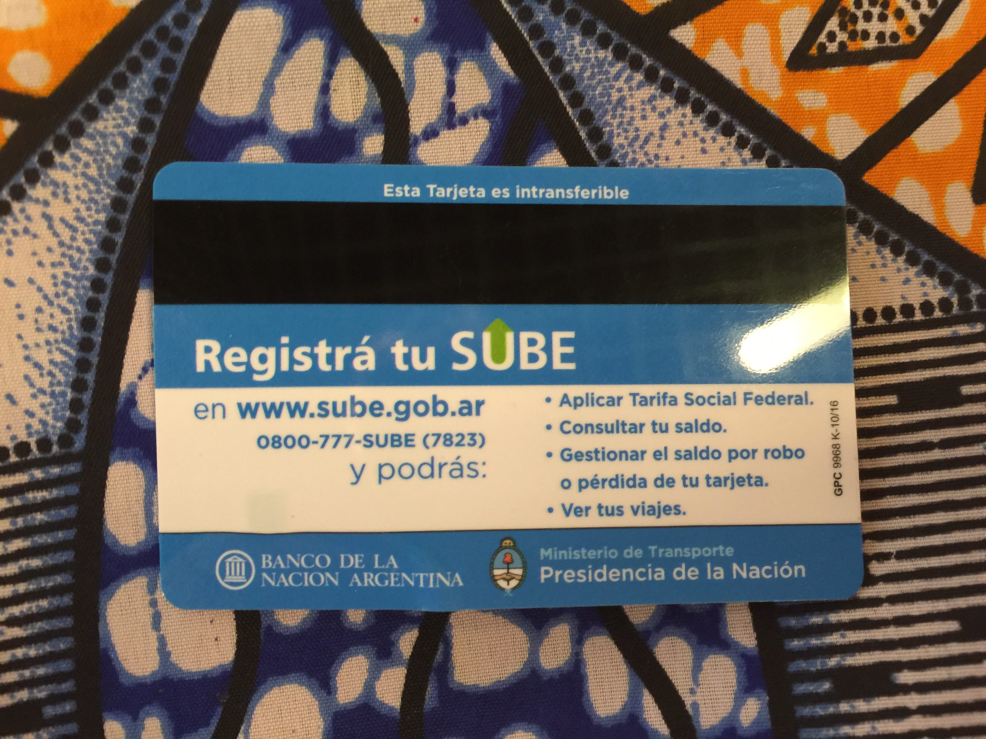 ブエノスアイレスの各交通機関(地下鉄、電車、バス)ではこのICカードSUBEが必要不可欠です。(下写真)