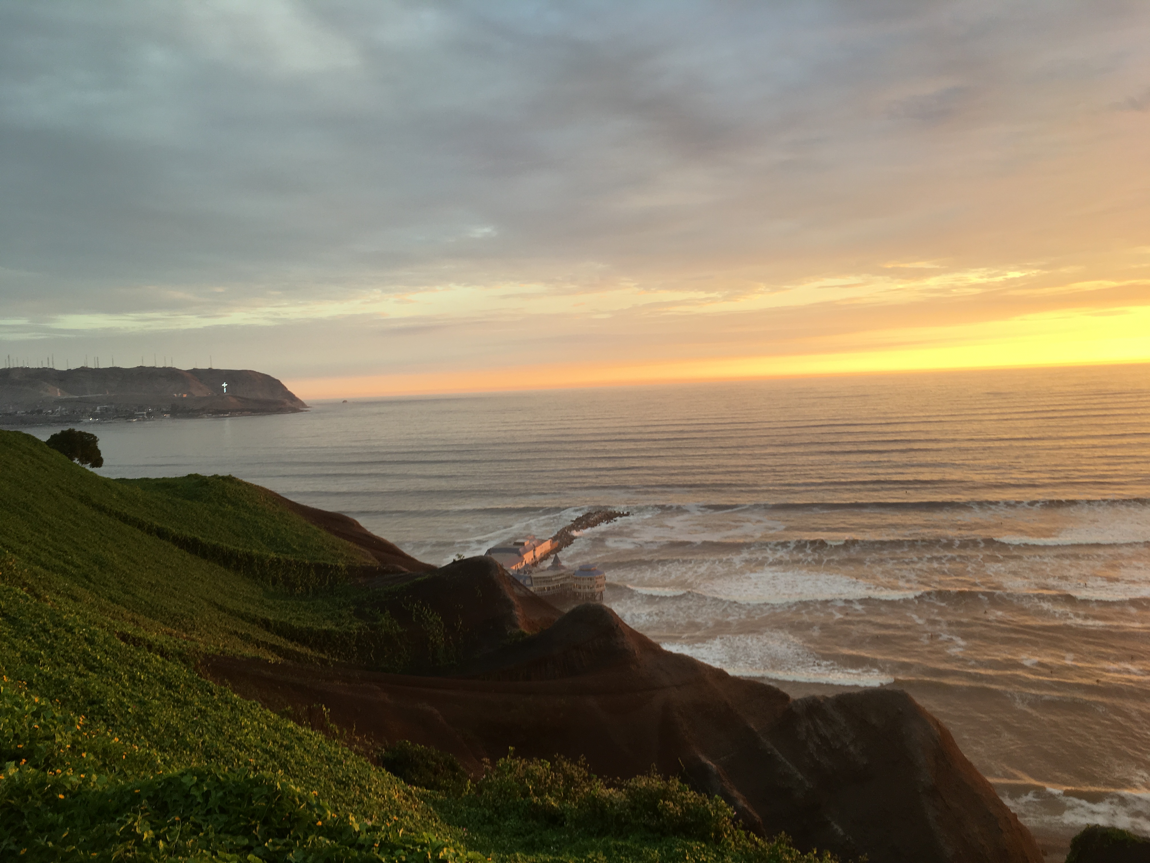 ツアーの時間は夕日が沈む前から夜までです。夕方はこの広場で夕日を楽しんで、そのあとはちょいちょいどこかに寄って最後に、次に紹介するところへ行ってリマの夜景を高地から楽しむという構成になっています。帰りはどこでおりても構いませんが、自己申告となります。