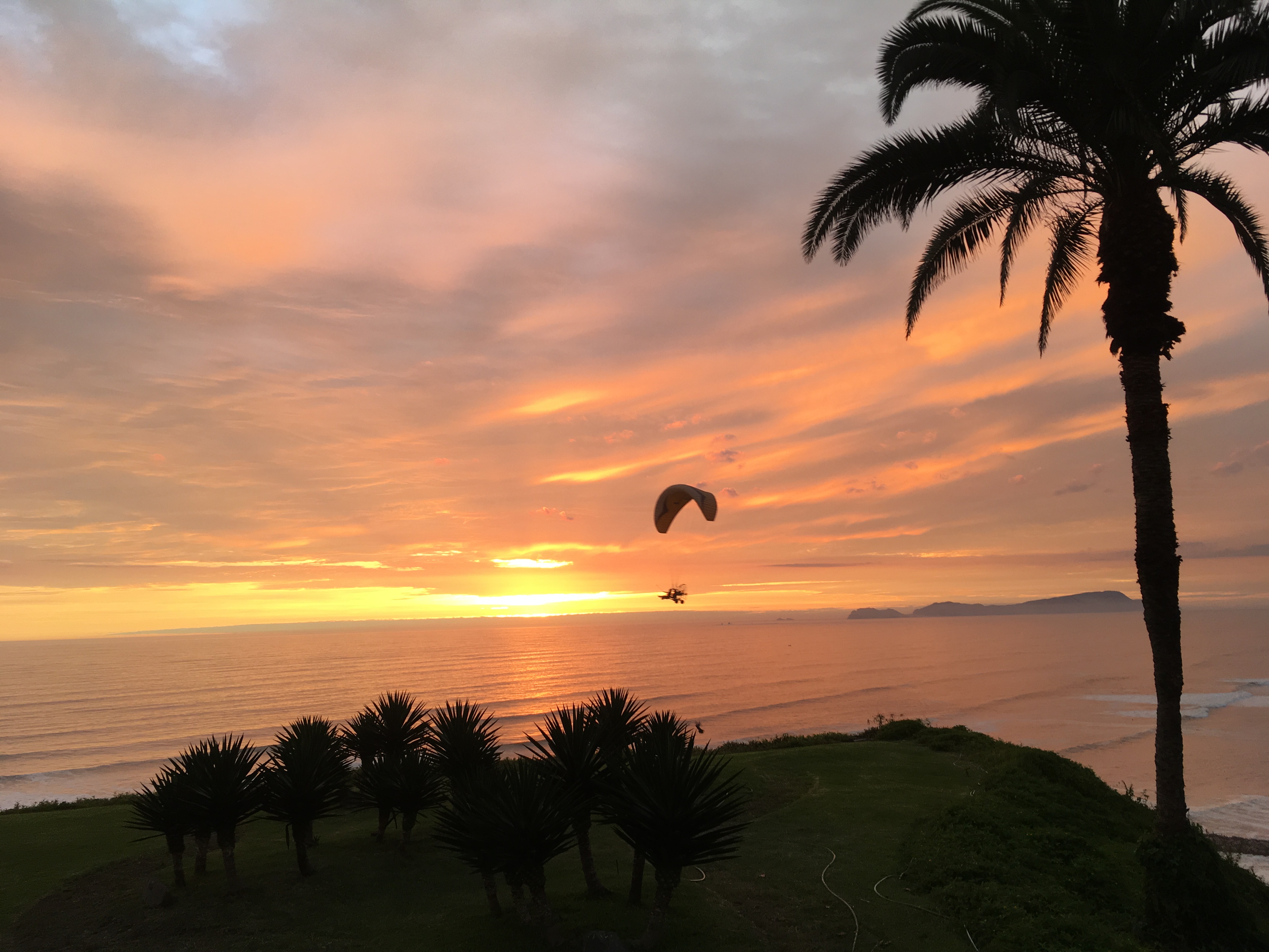 ちょうどいい時間にパラグライダーが飛んできていい感じでした。夕日は世界中どこで見てもきれいですね〜