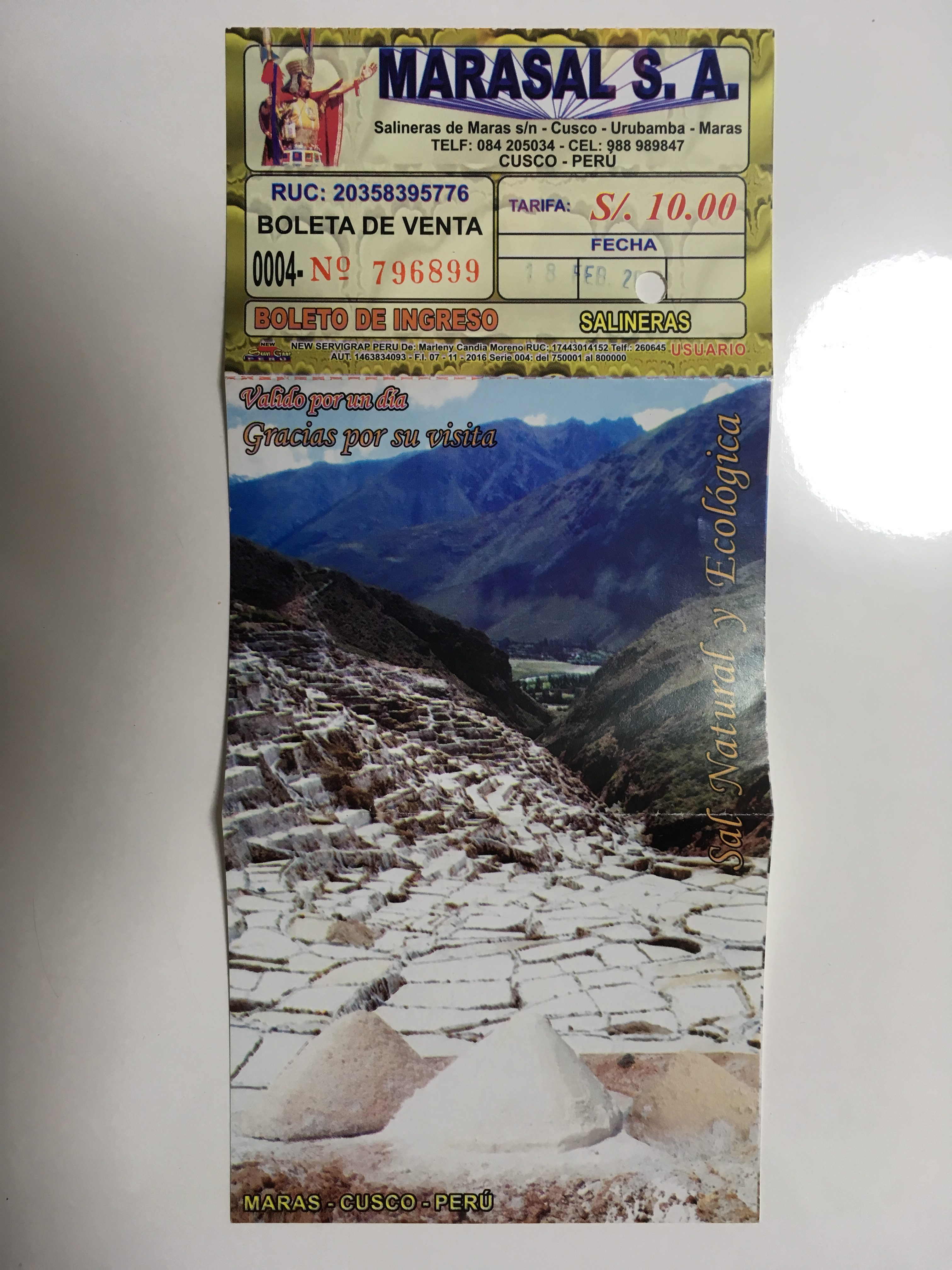 行ける遺跡によってチケットにはパターンがあります。モライで購入できるチケットは70ソルと130 ?ソルの2パターンでした。