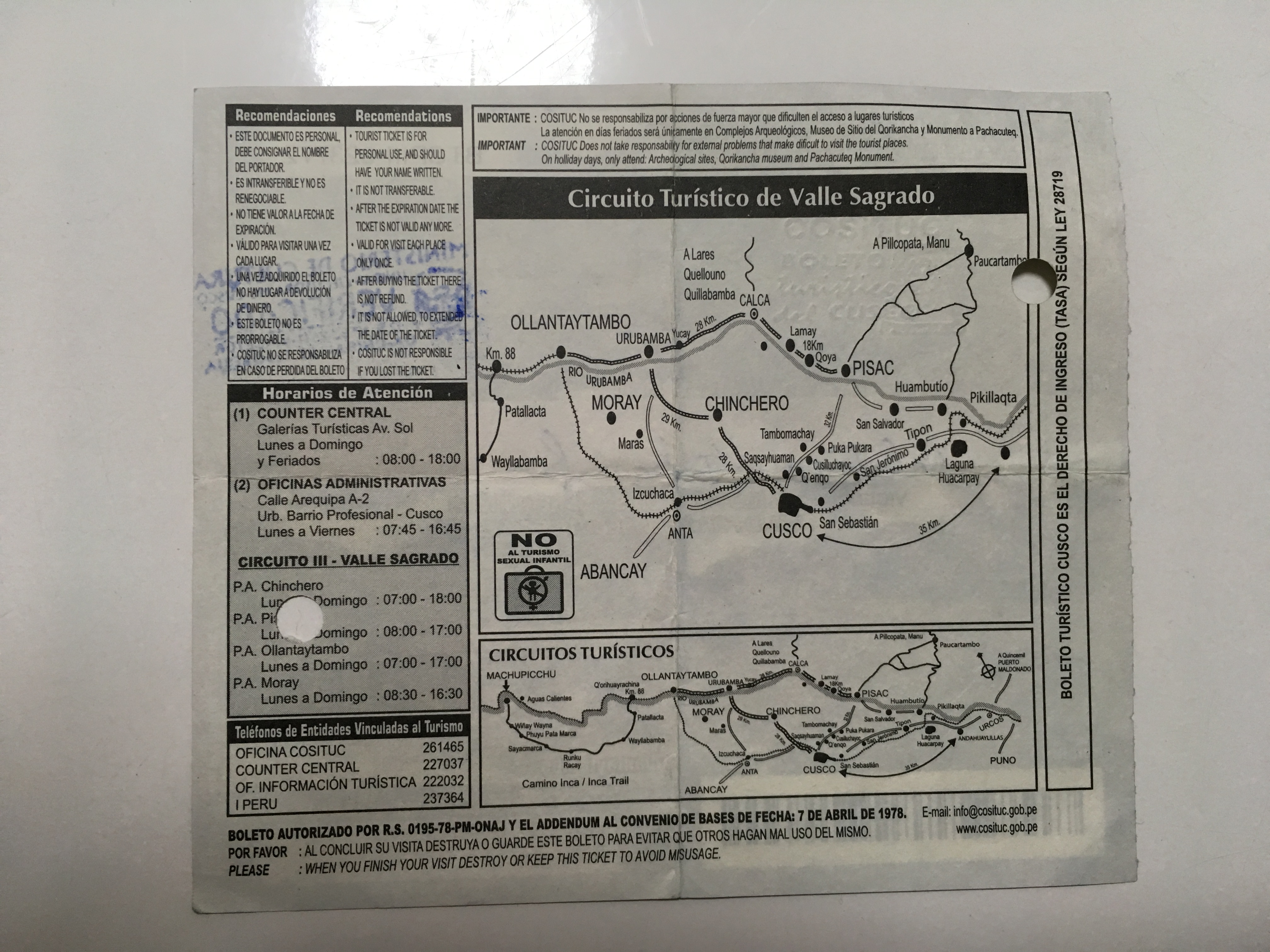 また、私は知りませんでしたが、もともとクスコのチケット売り場で自分の旅プランにあったチケットを買ってから遺跡を周るのが普通っぽいです。以下のホームページを確認して見てください。