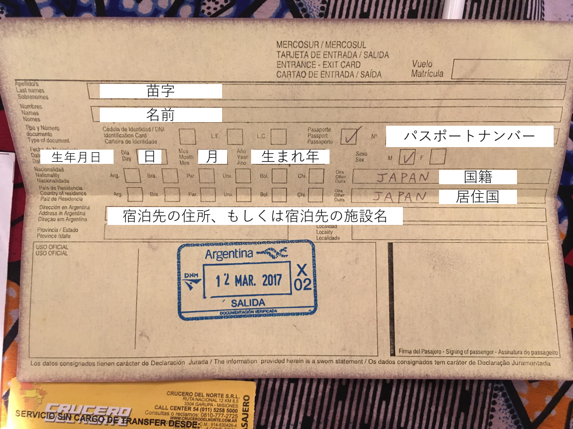 イグアスの滝ツアーなど、何度か、アルゼンチンの出国、ブラジルへの入国をしてきましたが、ちゃんとこの用紙に記入したのは、この時だけでした笑。